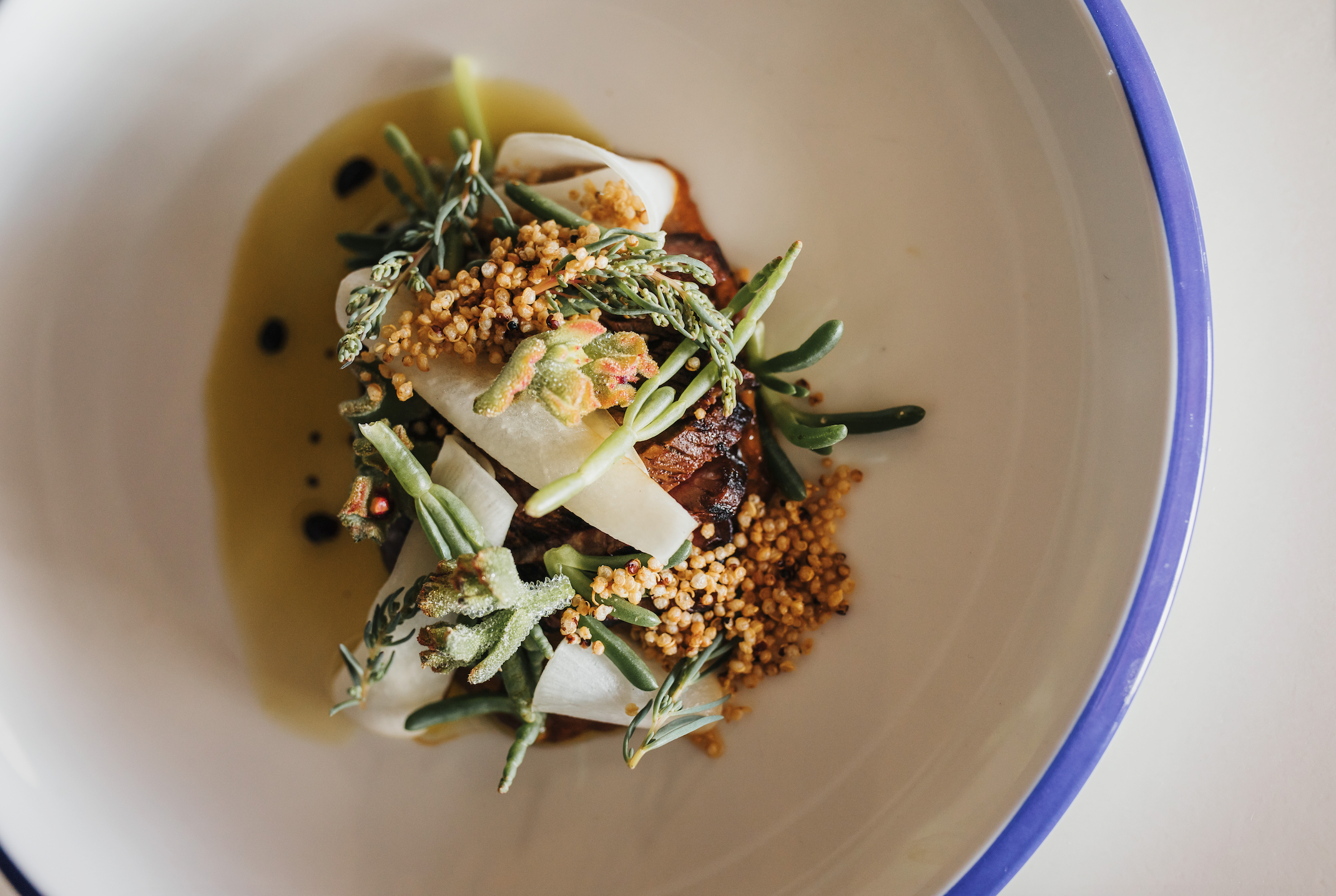 Head chef Thomas Erkelenz creates a seasonal menu drawing inspiration from bush tucker flavours, local produce, foraged finds and our very own Australian native garden.